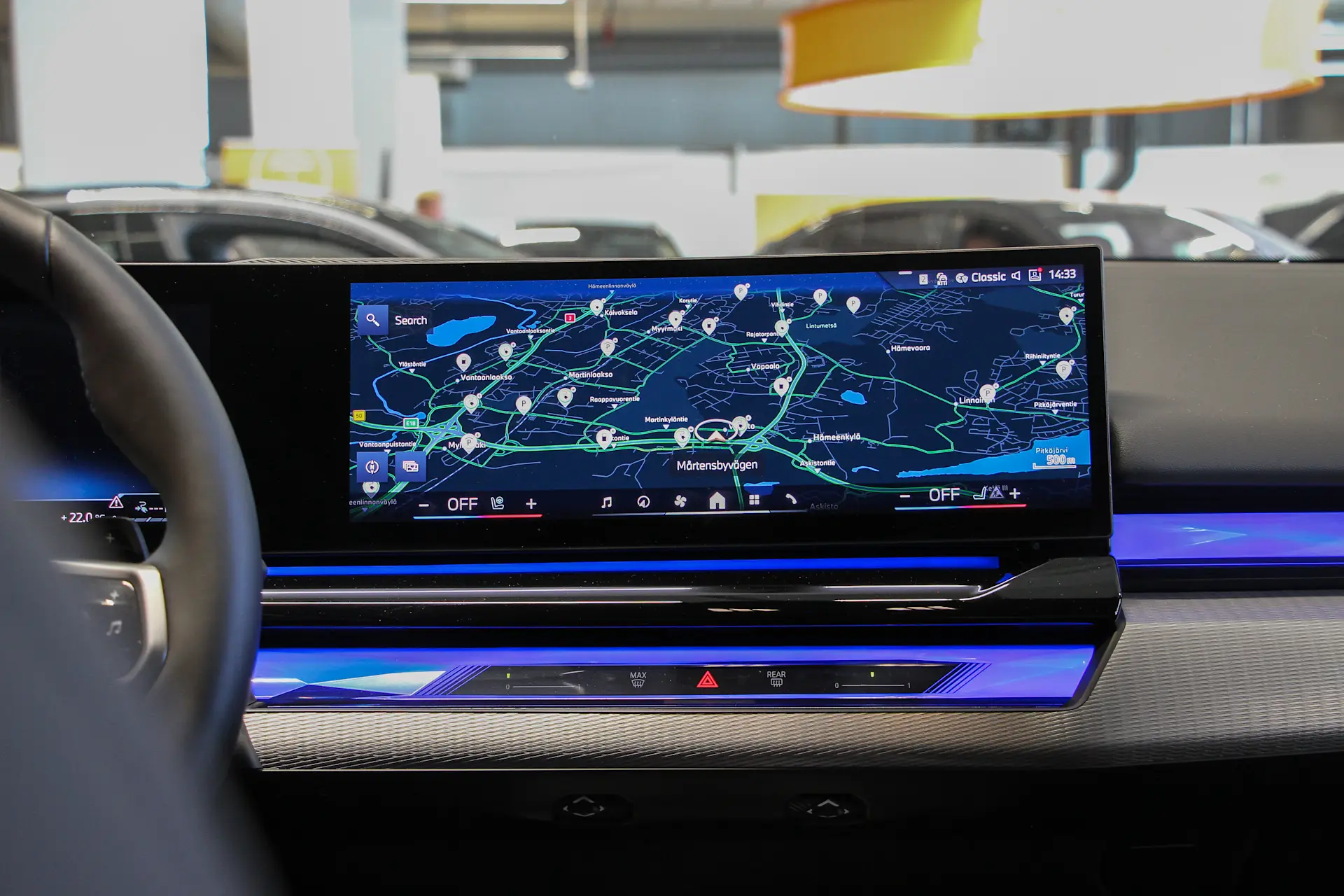 - Peruutuskamera: Helpottaa pysäköintiä ja lisää turvallisuutta erityisesti ahtaissa paikoissa.
