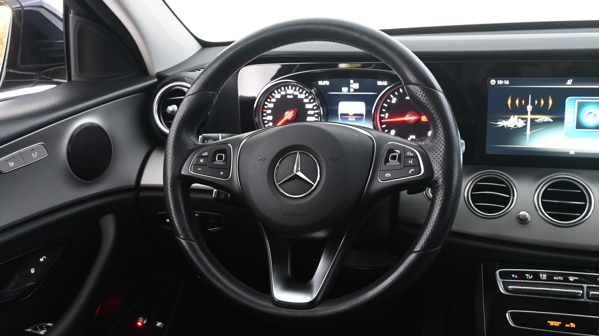 Nahkaverhoiltu monitoimiohjauspyörä vaihteenvalitsimilla